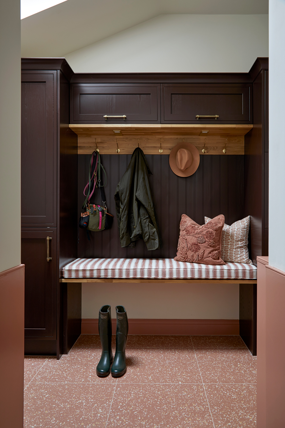 After a muddy walk with the dogs, James wanted to step inside and instantly feel warm and at home. Rich earthy tones make this boot room as welcoming as the rest of the house.